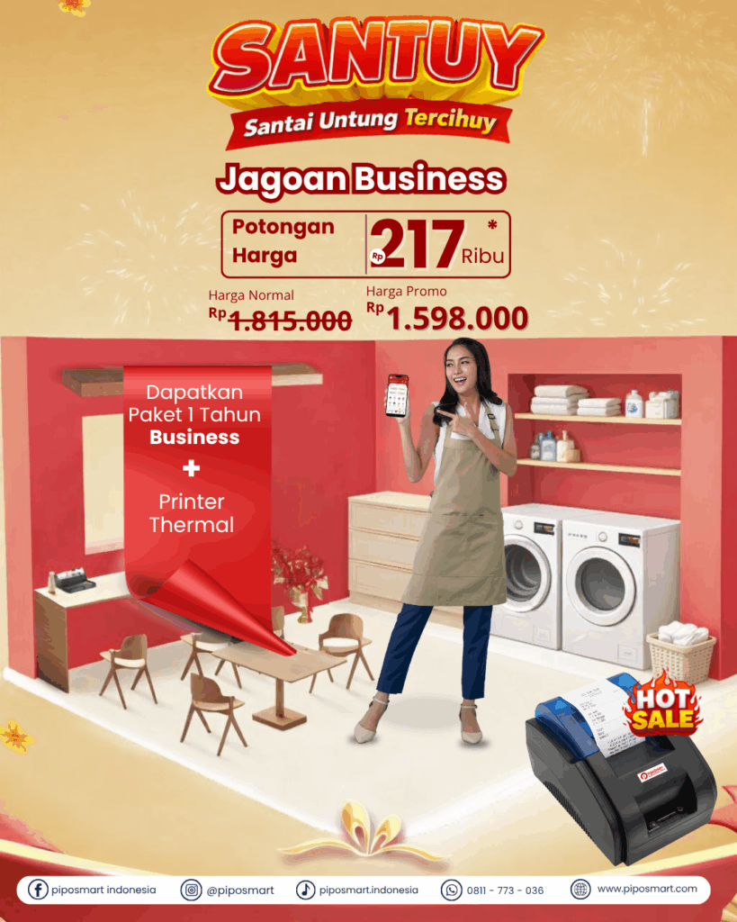 Waktunya upgrade bisnis laundry Juragan! Dapatkan Aplikasi Kasir Laundry + Printer Thermal dengan harga spesial.