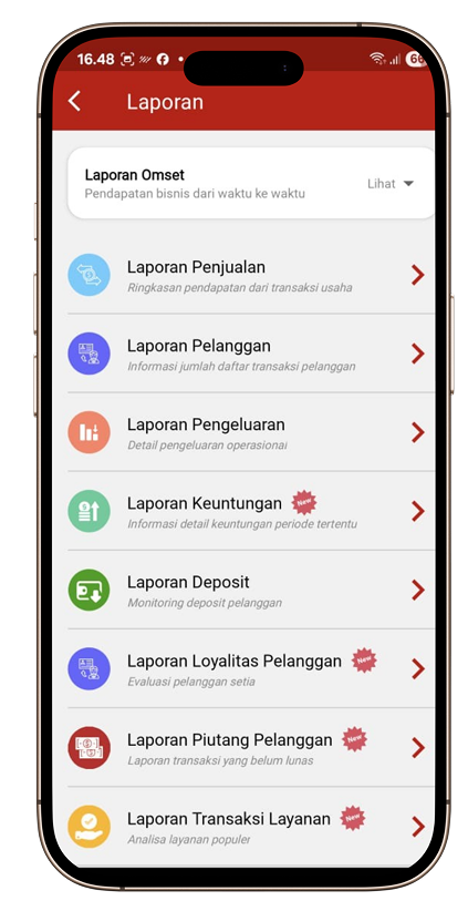 Semua laporan penting tersedia dalam satu menu sehingga perkembangan usaha bisa dipantau lebih cepat dan praktis.