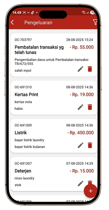 Semua pengeluaran bisnis tercatat dengan detail, mulai dari kebutuhan operasional hingga biaya tambahan.